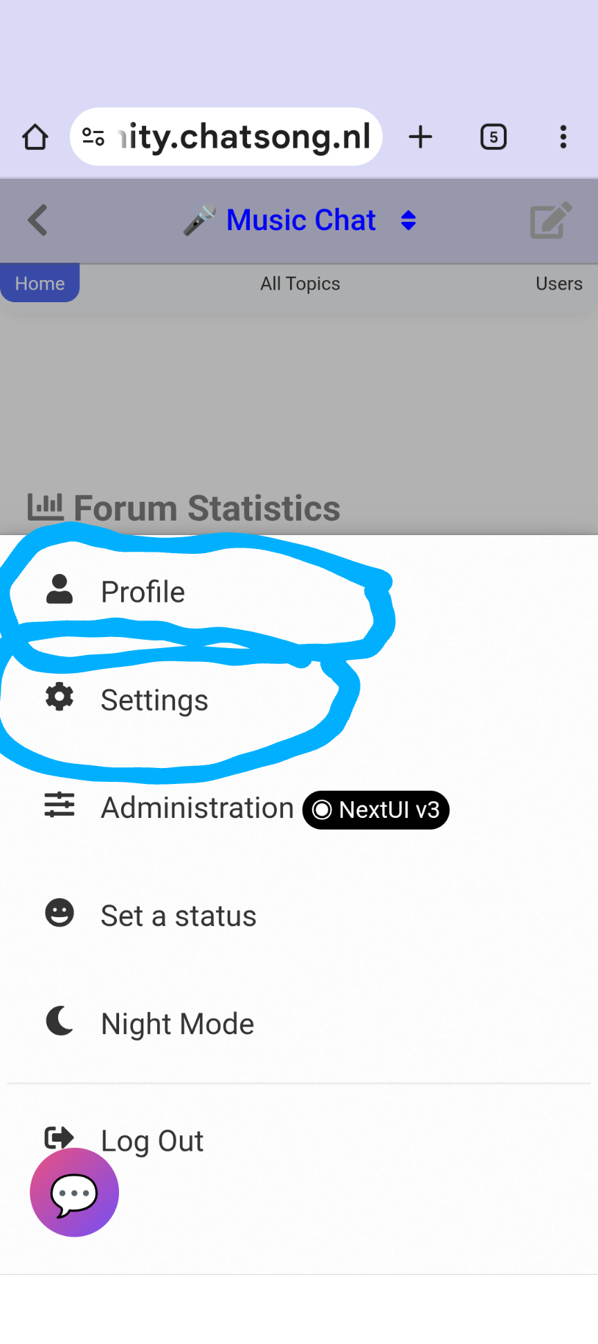 You’ll see a menu with options like “Set a status,” “Night Mode,” and “Log Out.” Tap Settings to start customizing.